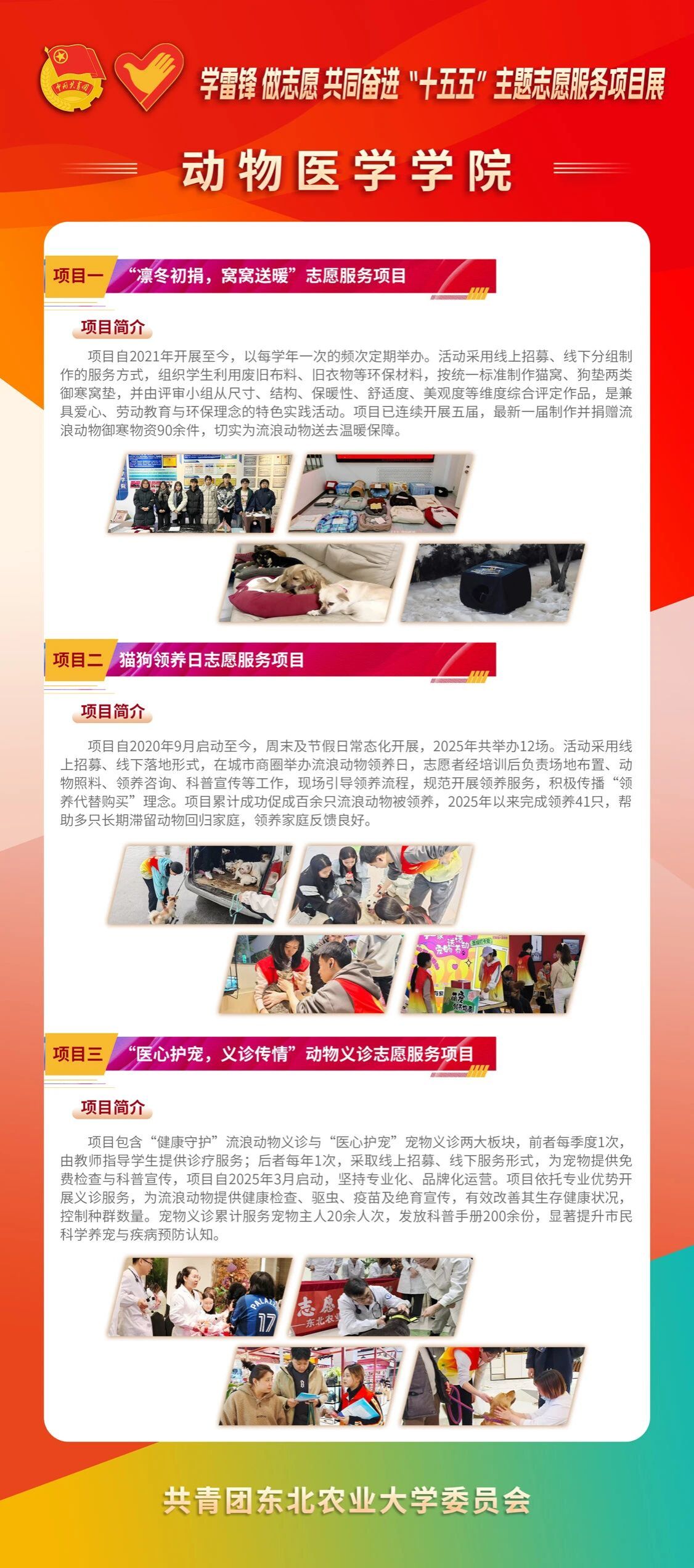 为深入学习贯彻党的二十届四中全会精神和习近平总书记致中国志愿服务联合会第三届会员代表大会重要贺信精神,全面落实立德树人根本任务,大力弘扬雷锋精神及“奉献、友爱、互助、进步”的志愿服务精神,引导我校青年在服务国家战略、百姓民生、社会治理中彰显青春担当,推动学雷锋志愿服务精准化、专业化、品牌化、常态化,各学院紧扣学科优势与社会需求,深耕打造一批特色鲜明、成效突出的品牌志愿服务项目,以志愿实践凝聚青年力量、强化使命担当。