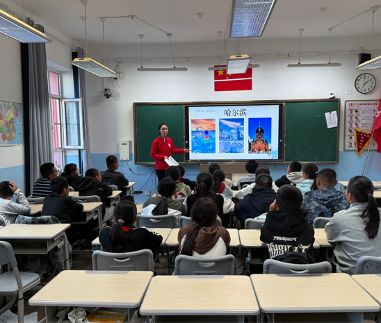 课堂伊始,支教团成员从地理视角引入本课内容,通过图片与影像的形式展示松花江冰雪、黑土地与乌伦古湖湿地、新疆牧场的风貌,对比两地在自然环境、气候特征上的差异与联系,穿插地理常识趣味问答,让学生在直观对比中掌握地理知识,感知地域文化差异与共性。