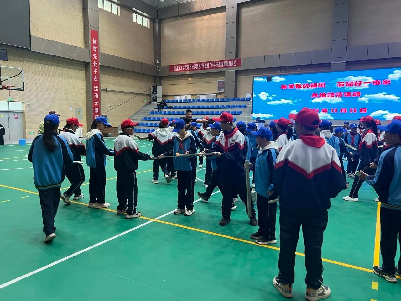 开营破冰环节,成员们统筹协调,为初级中学学子与182兵团学生搭建沟通桥梁,通过互动协作打破地域隔阂,助力学生进行团队建设。