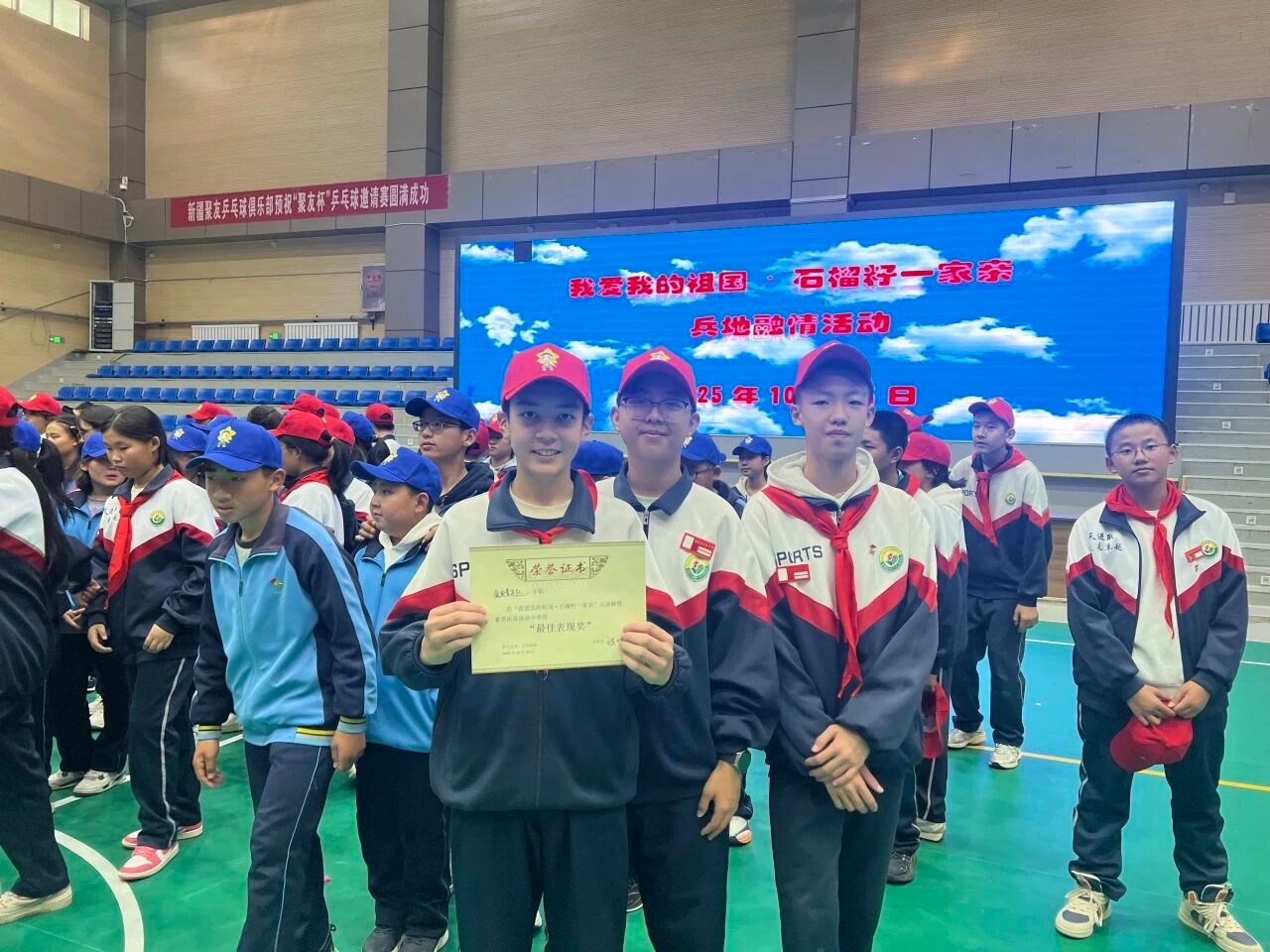闭营仪式上,研支团成员协助组织奖项颁发,带领全体师生齐唱《歌唱祖国》,将活动气氛推向高潮。