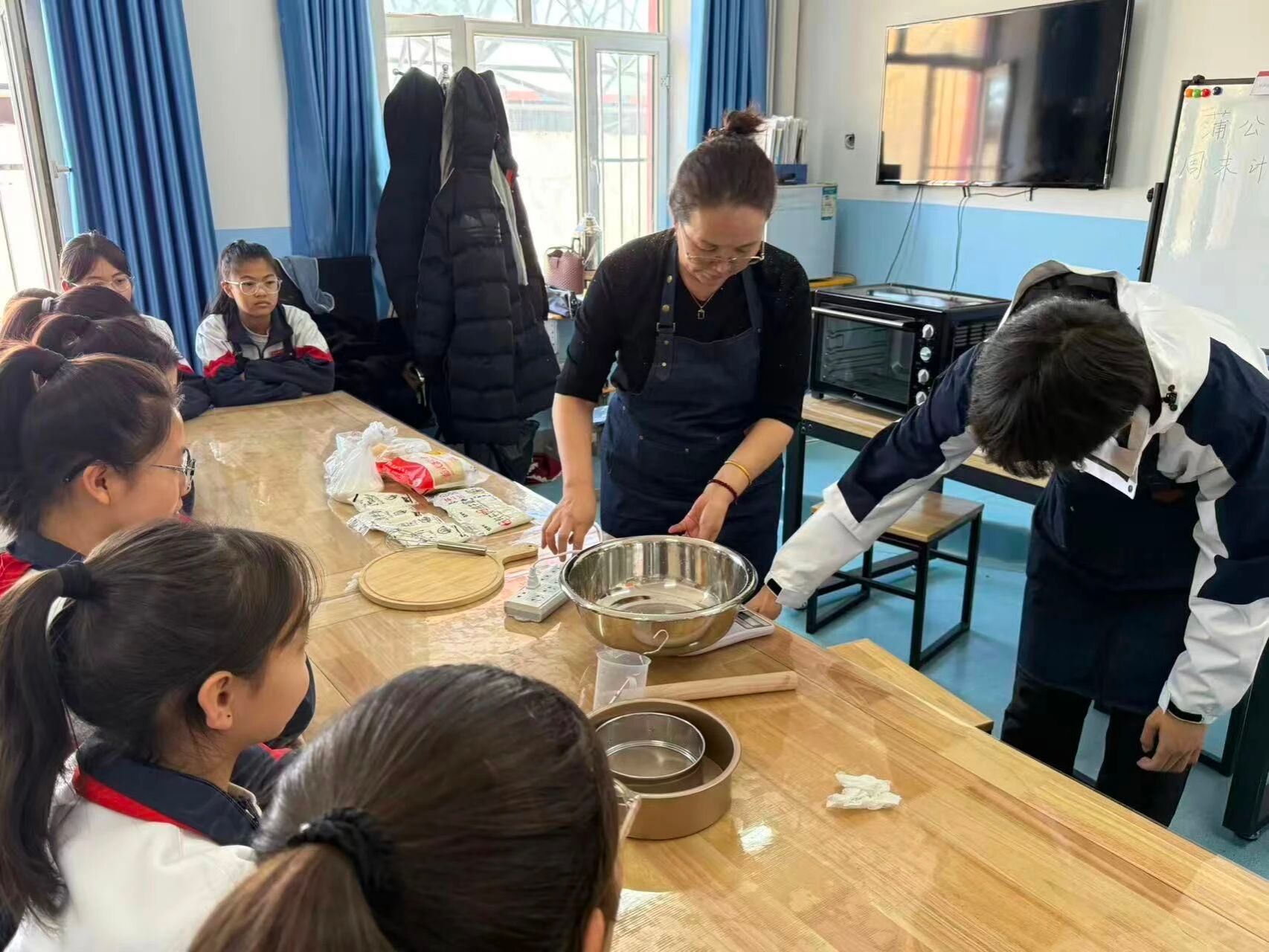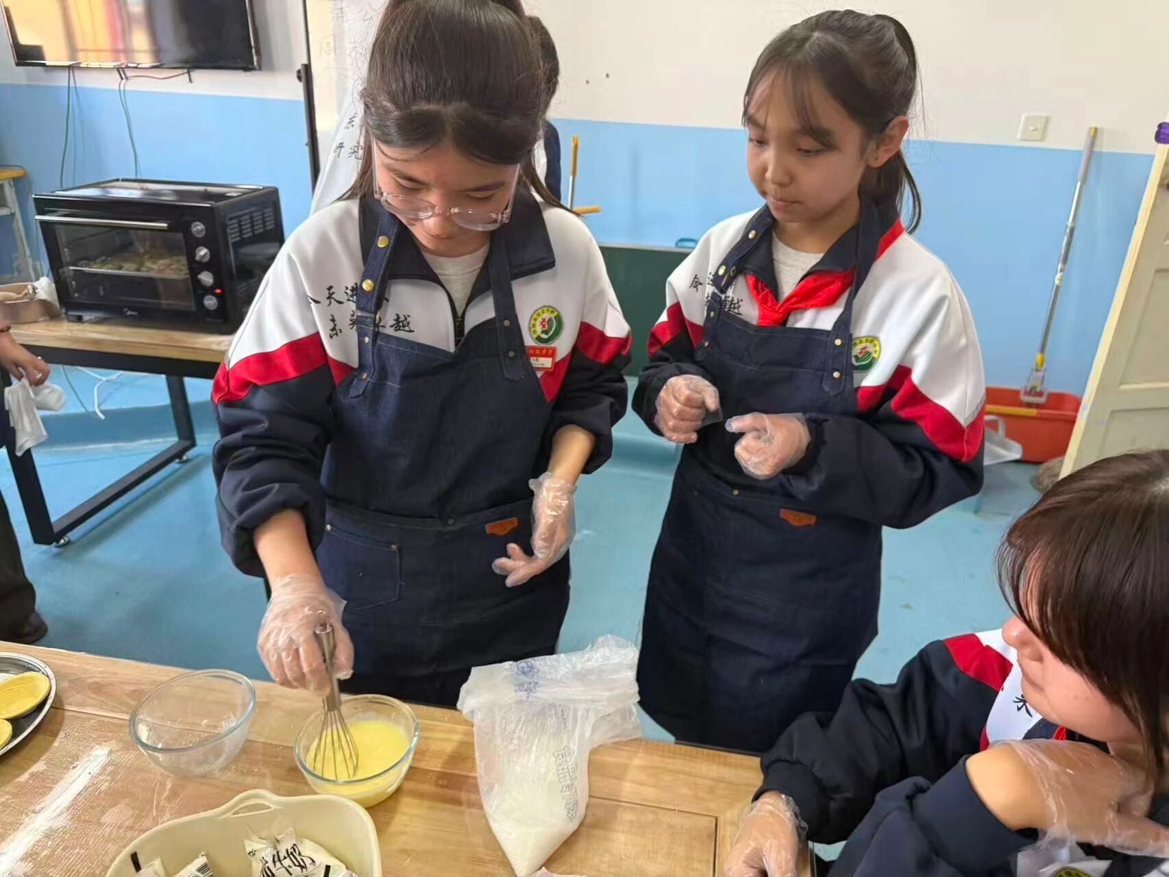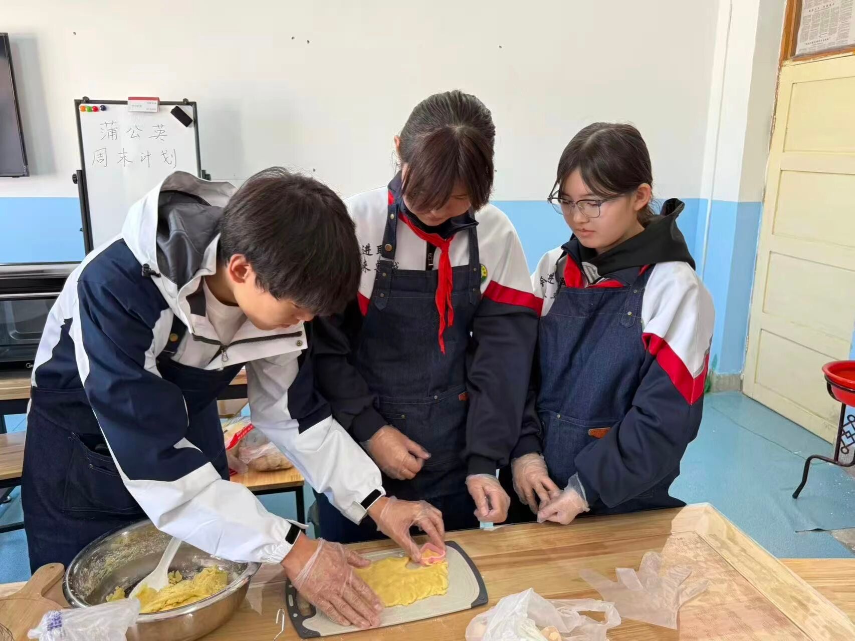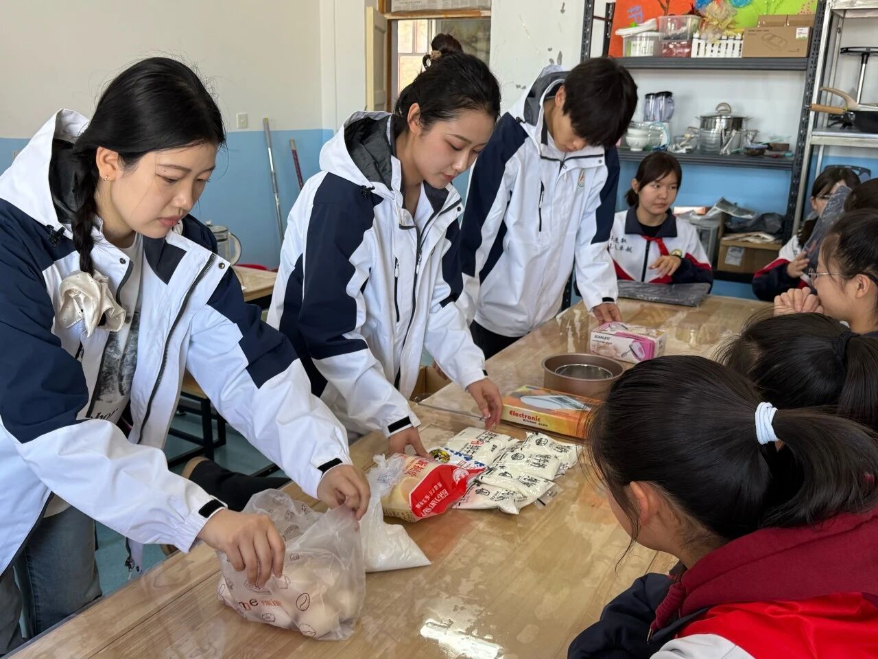 为丰富青少年假期生活,助力青少年德智体美劳全面发展,1月11日,东北农业大学研究生支教团在福海县开展“蒲公英”周末计划第二期活动,特邀初级中学劳动教师帕丽古丽为学生带来趣味烘焙体验。